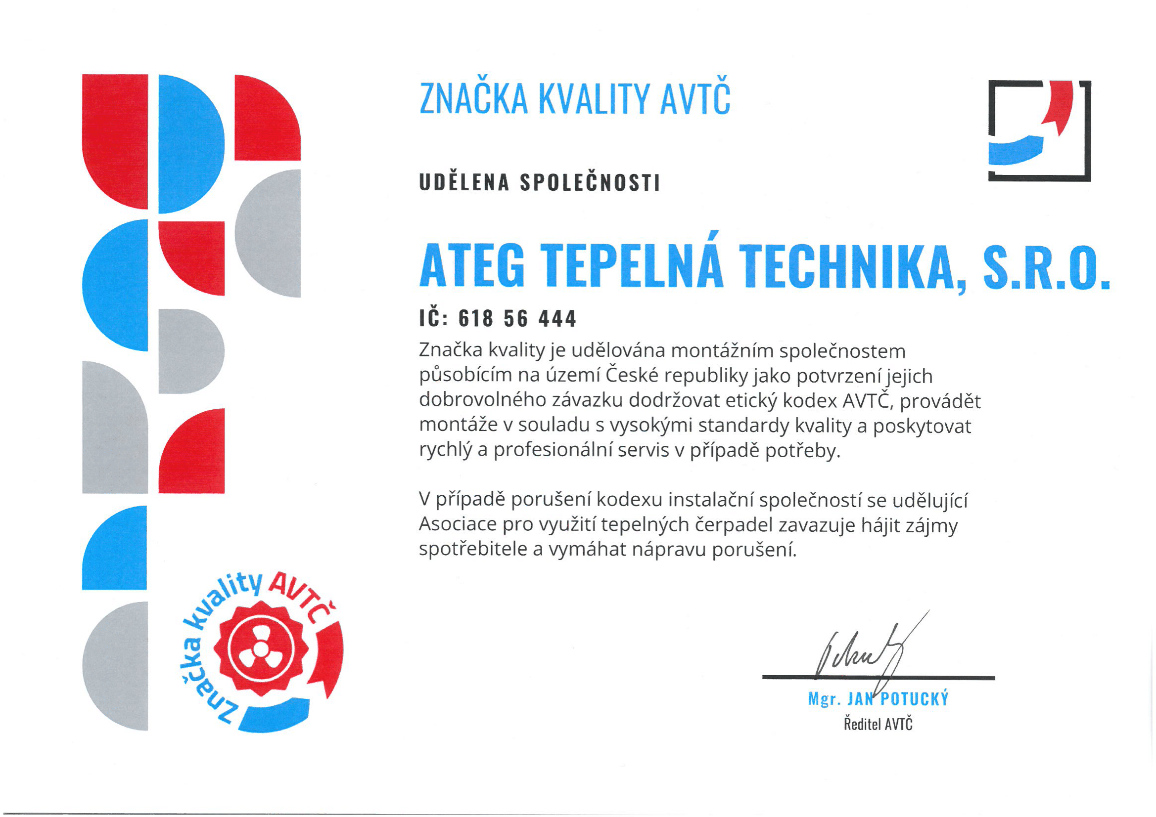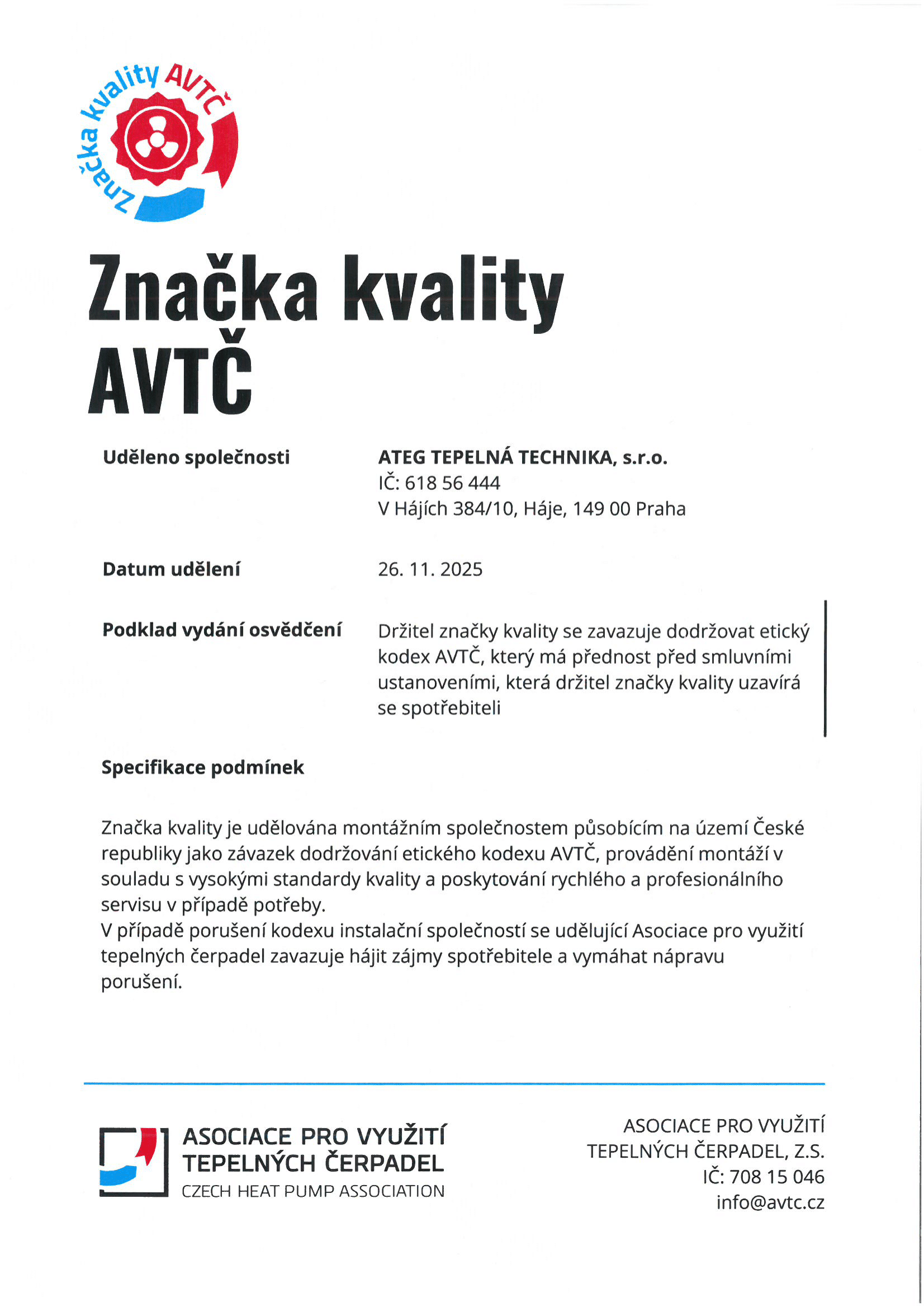 Společnost je členem a držitelem značky kvality Asociace pro využití tepelných čerpadel.